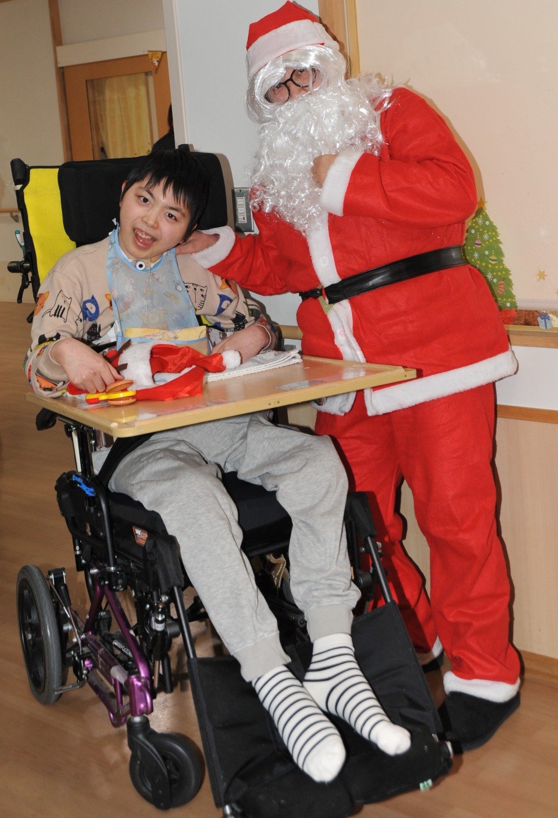 療護園にもサンタクロースがプレゼントを届けに来てくれました。