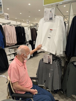 冬物の衣類をしまむらで探し、生地素材やファスナー、ボタン等を注意深く観察しながら、好みに合う良い物を見つけると『おぉ。』と声を上げ目を輝かせていました。