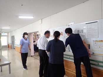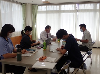 全職員が自己評価シートを記入後、各課ごとに取りまとめ、最終的に施設の決定として取りまとめて訪問調査を受けます。