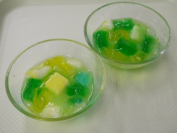 9月19日は厨房職員のチャレンジメニューを提供しました。「あんかけチャーハン」と「春巻き」はNさん、「季節のスムージー」はHさん考案のメニューです。提供までにご飯が水分を吸ってしまうので、あんは別添えです。「春巻きが出るのが久しぶりでうれしい!」と言っている方、「スムージーは何が入っているかわからないけどすごくおいしい!」と言っている方などいて好評でした。ちなみにスムージーには梨と葡萄が使われていました🍇