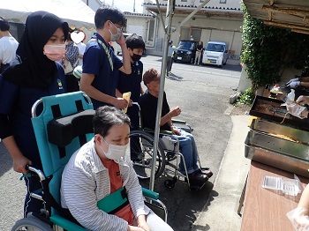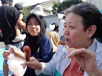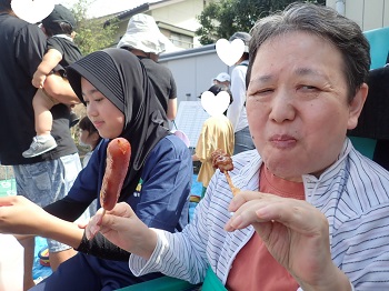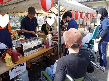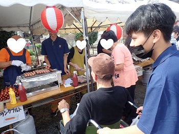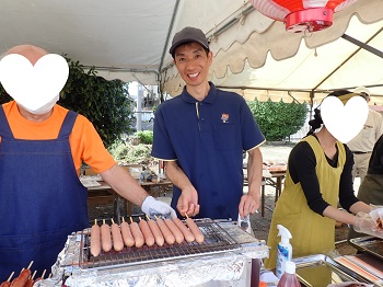 (職員のKさんは地区役員のため、せっせとフランクフルトを焼いていました。)