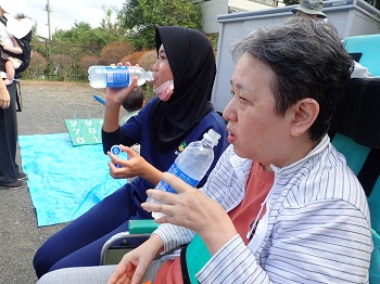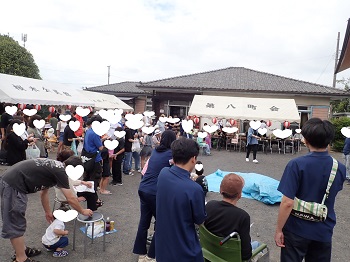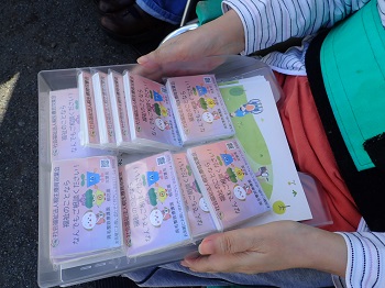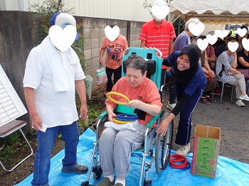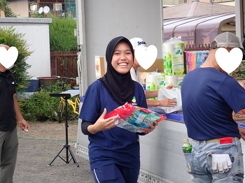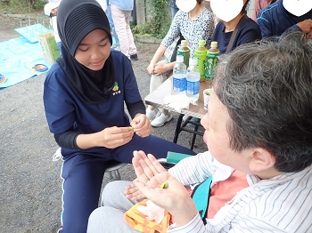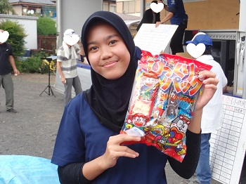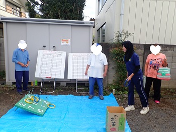 13:00~は大抽選会があり、抽選番号の用紙を握りしめ自分の番号が呼ばれるのを待ち…結果2名の職員が呼ばれ、技能実習生のCさんは輪投げの上位でお菓子の詰め合わせをいただきました♪