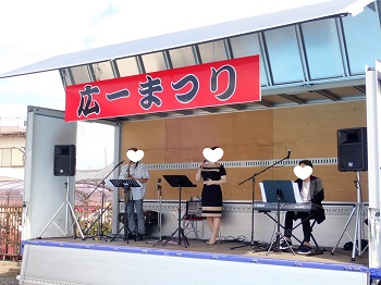 10月5日(日)11:20~14:15 利用者Yさん、Aさん、職員4名でご近所の「広一まつり」に行って来ました。