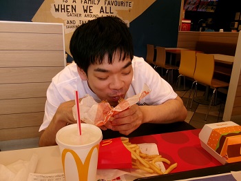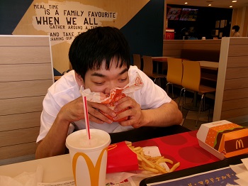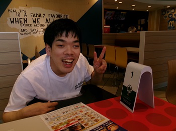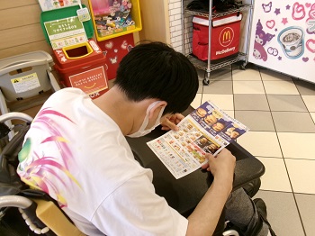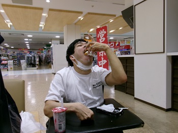 念願のチーズ月見バーガー等を食べ、『初めて食べる味で美味しい。』と昼食に満足されていました。