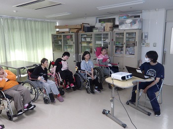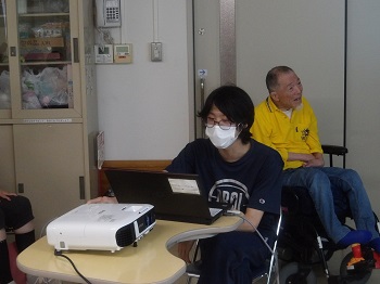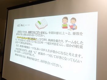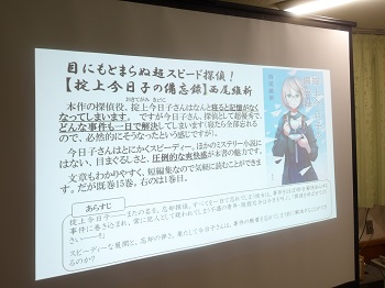 D支援員がおすすめの本をPowerPointで紹介すると、参加された利用者さんは興味深そうに聞いていました。