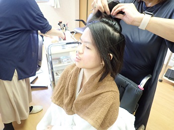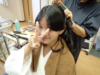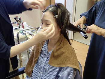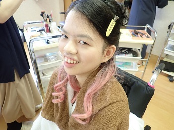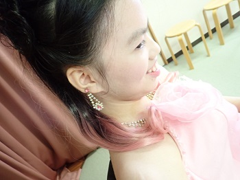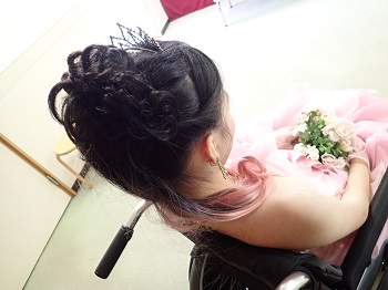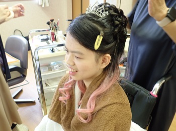Hさんはピンクのドレスを選び、ヘアメイクをしている時はとっても嬉しそうにしていました。