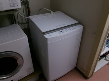 同日、当園の洗濯機を新調し納品されました。今回は10kgの洗濯機を購入してきました。冷凍庫のようなデザインですが、桐花園での活躍を期待しております。