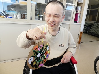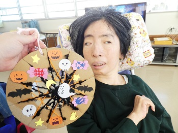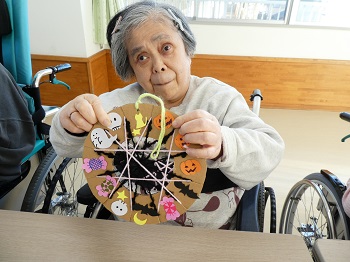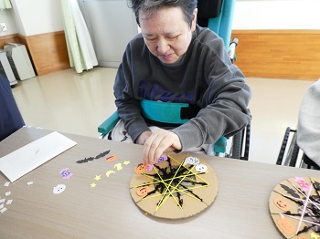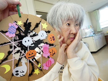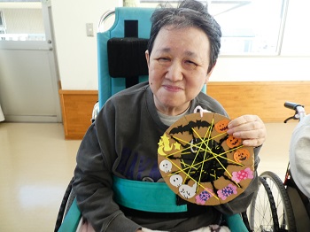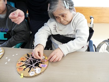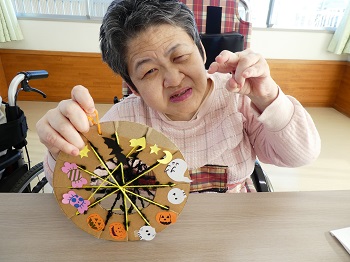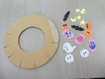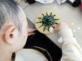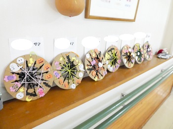 好きな色の毛糸を選び、画用紙で作った飾りを台紙に好きな配置で貼ってもらい、可愛らしいハロウィン飾りを作る事が出来ました🎃