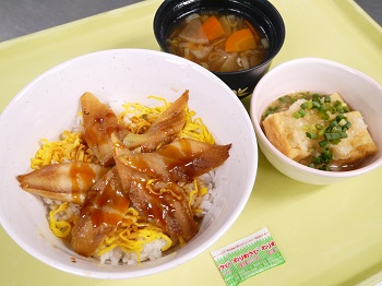 10月28日は群馬県民の日、夕食に あなご丼・のっぺい汁・生揚げだし豆腐を提供しました。