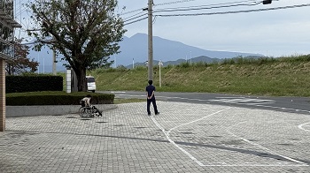 はねたき広場周囲を散策中、強い風が吹いた時、車や電車の走行音が聞こえた時等は視線を向けて周囲を観察していました。