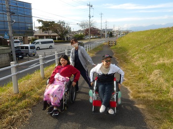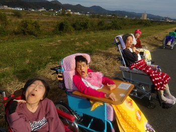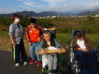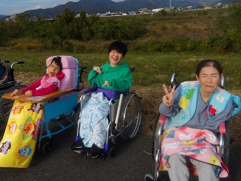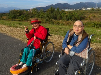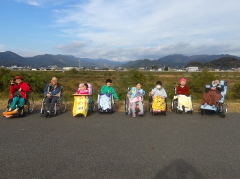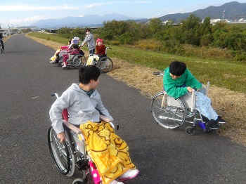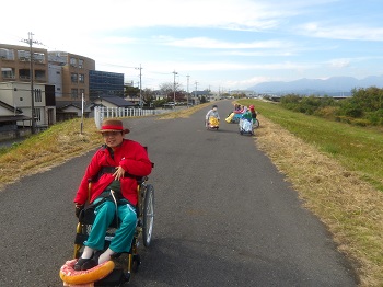 本日は天候に恵まれ、秋晴れの中皆さん心地よく行って来ました。やっぱり外の空気は美味しいですね。多くの利用者さんに参加して頂けました。先日の足利尊氏マラソンを終えた方や、来週12日に桐花園マラソンを控えている方もおり、アスファルトに立つと颯爽と漕ぎ始める姿が見られました。