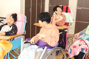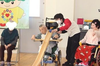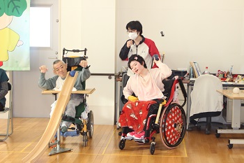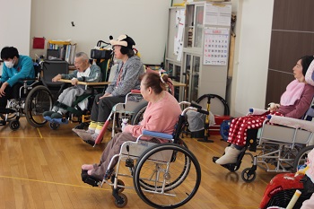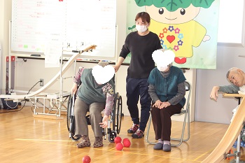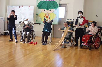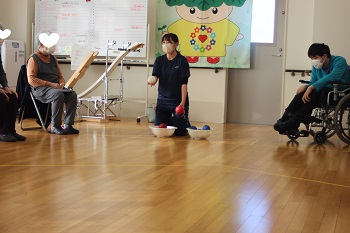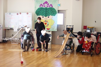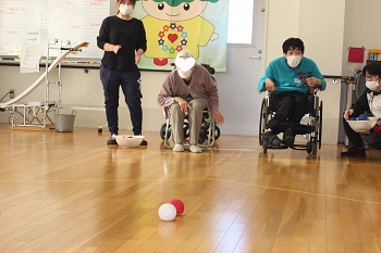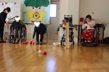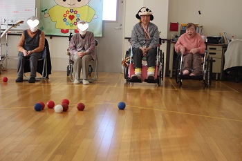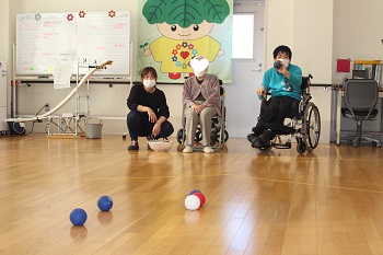 11月10日の日中活動は、双葉苑ケアハウスの利用者さんが桐花園まで来て下さり、ボッチャ交流会を行ないました!
