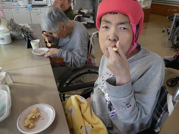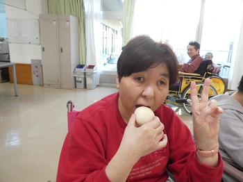 11月17日の日中活動はティータイムで、ミニ肉まん、カルピスが提供されました。