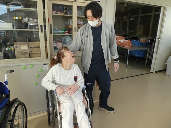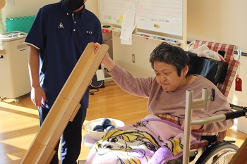 ランプを使う人はリハビリ室、手投げの方は創作活動室です。