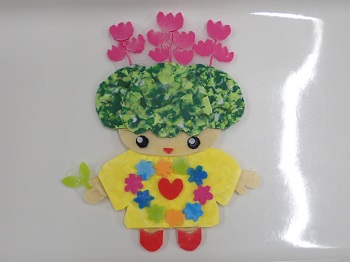 桐花さんの葉っぱは全面濃い緑色で作りたかったのですが、材料が足りず薄い緑色と混色になりました…