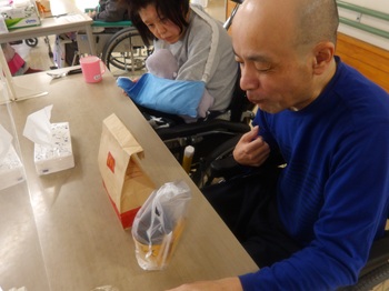 「美味しいんですね。良かったです。」と支援員が言うと満面の笑みを見せていました。