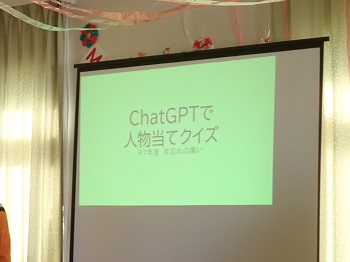 その後は「chatGPTで人物当てクイズ」を行いました。