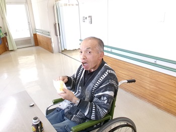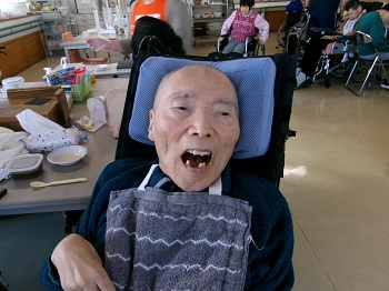 お誕生日はもう少し先ですが、Kさんは60歳になるので、みんなから「おめでとう!」とお祝いをしてもらい、記念撮影を行いました。