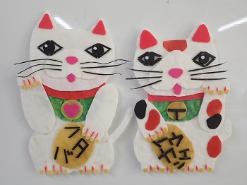 招き猫は、右手を挙げているものと左手を挙げているものがあって、右手を挙げた猫は「金運を招く」、左手を挙げた猫は「人やお客様を招く」という意味があるそうです。