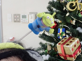 「写真撮って。」と言うのでクリスマスツリーの前で撮りました。