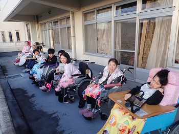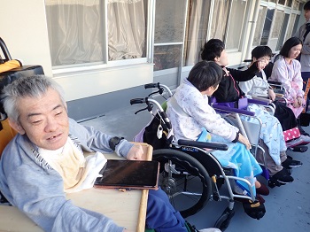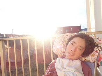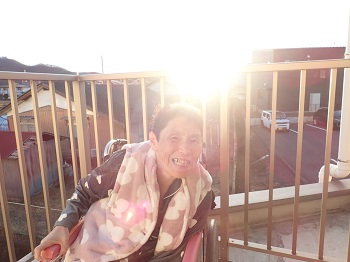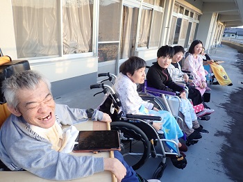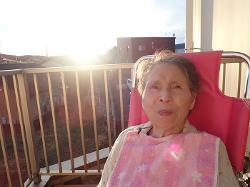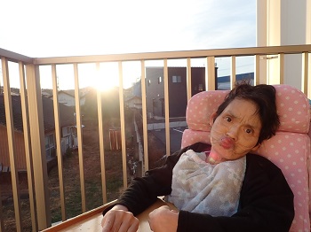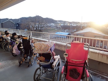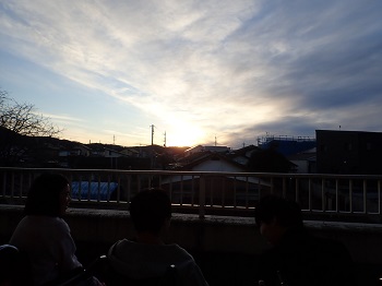 最初はリハビリ室に行ったのですが、よく見えなかった為、2階のベランダで夕日を見ました♪