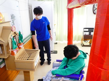 (オムツのダンボールを使っているので、毎年補修をしながら組み立ててくれています。)