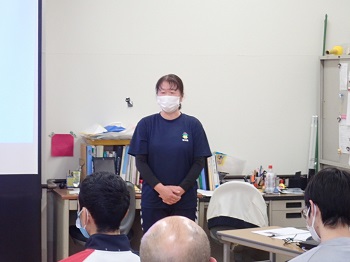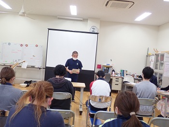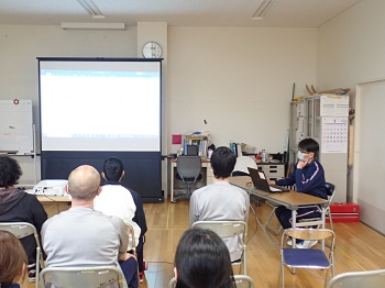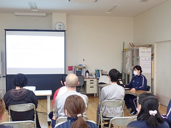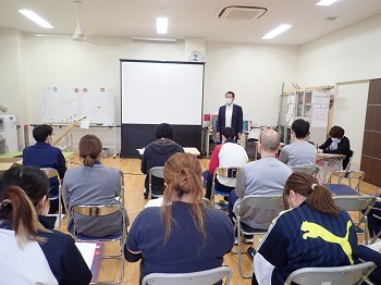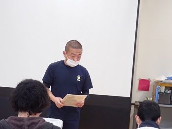 その後、生活支援員として入職したIさん挨拶、1月の接遇目標を考えてくれたOさんの発表がありました。