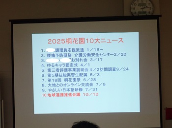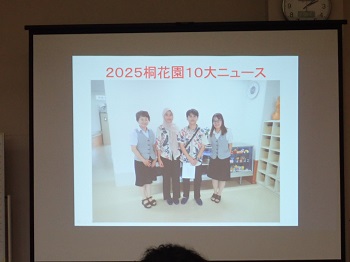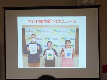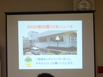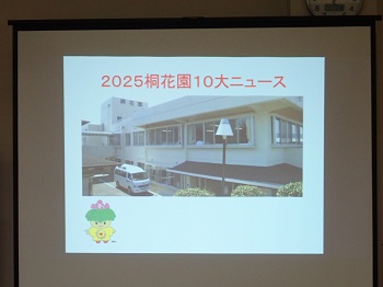 園長が思う「2025年 桐花園10大ニュース」の発表があり、年末に受けた腰の手術の説明もありました。