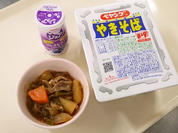 昼食は特別献立として、ペヤングやきそばが提供されました。