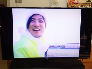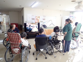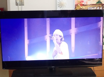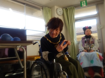 利用者Mさんがファンである、上地雄輔さんのコンサート動画を見て楽しんでいました。