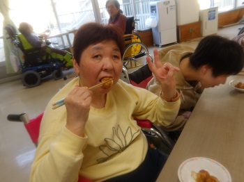 1月19日の日中活動はティータイムで、たこ焼き&緑茶が提供されました。