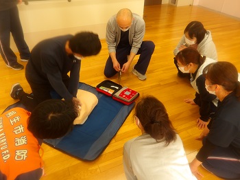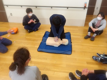 手技の確認を行い、AEDについても詳しく学ぶことができました。