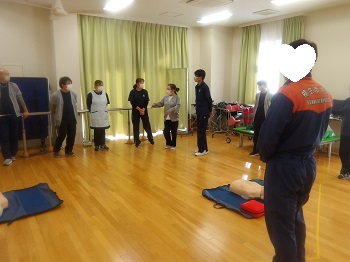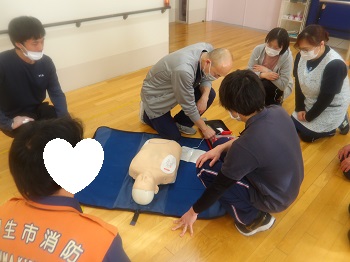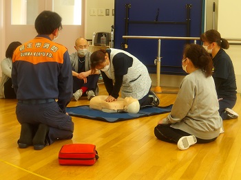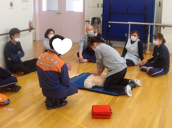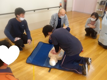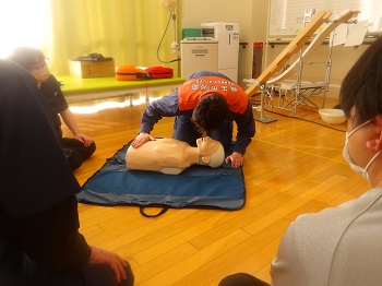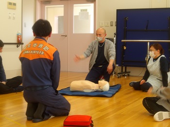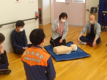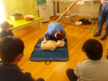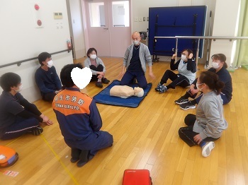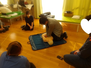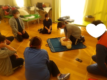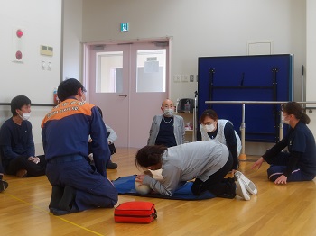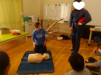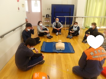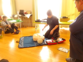 1月21日(水)13:00~16:00は、桐生市消防署から2名の隊員さんに来園していただき、普通救命講習会を受講していました。
