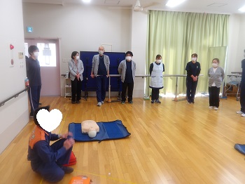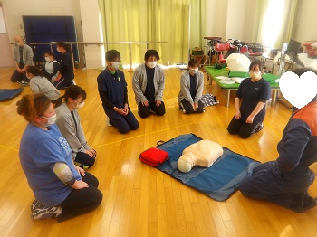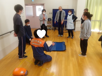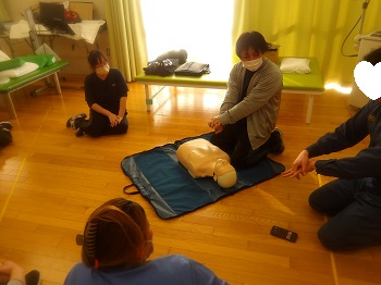 今年度は3回ほど普通救命講習会を行い、全職員が受講して修了証をいただきました。