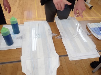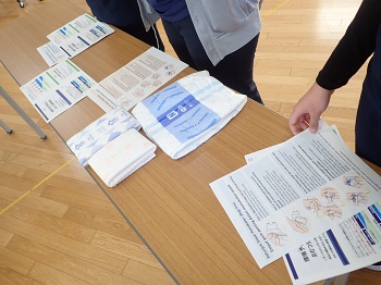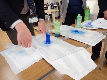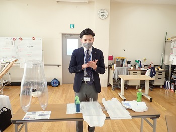ユニ・チャームのMさんに来園していただき、新入職員を対象に正しい当て方を教えていただきました。
