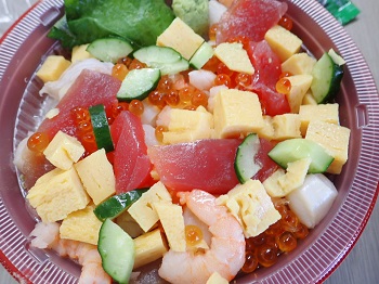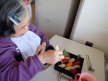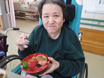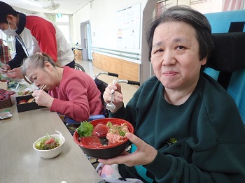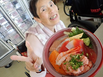 利用者さん9名が昼食として、美喜仁さんにお寿司や海鮮丼を注文しました🐟