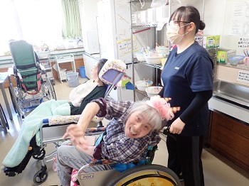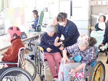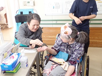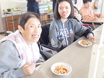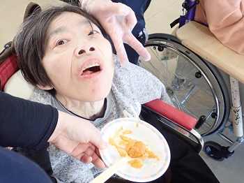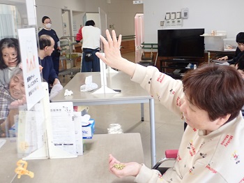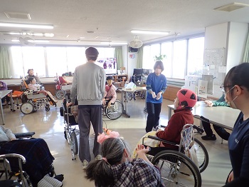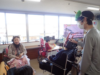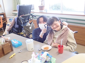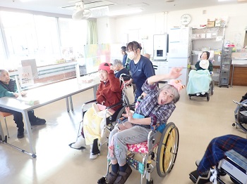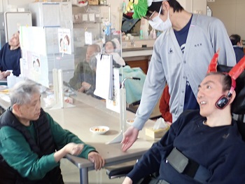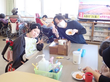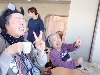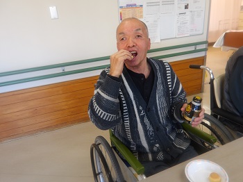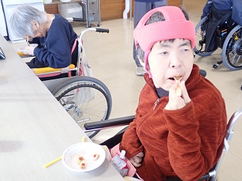 2月4日(水)は日中活動として、節分豆まき&ティータイム(プチアメリカンドッグ、緑茶)を行っていました。