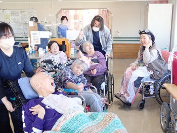 節分は2月3日ですが、火曜日は1日入浴(午前が男性、午後が女性)を行っているため、翌日の豆まきです。