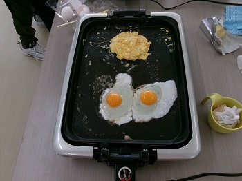 余った卵で目玉焼きとスクランブルエッグも作ることができ、ご本人は満足した様子でした。