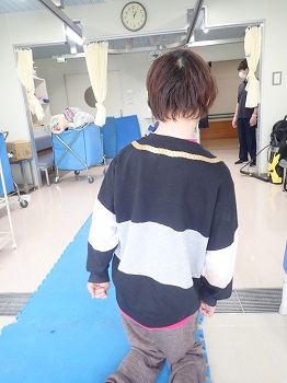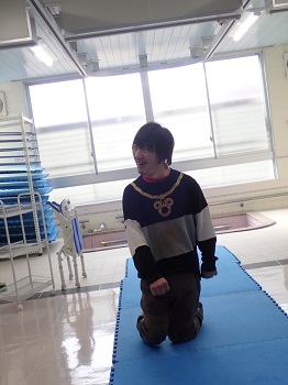 担当の支援員Mさんと一緒にジャイアンツの曲をかけて頑張っていました。