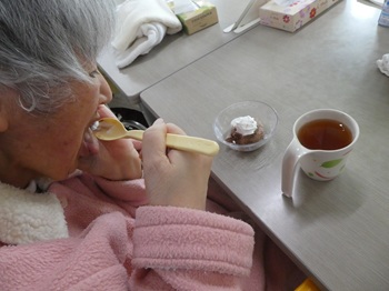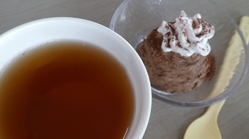 調理員のHさん手作りチョコムース&紅茶が提供されました。