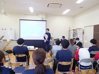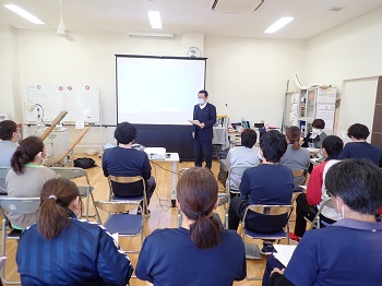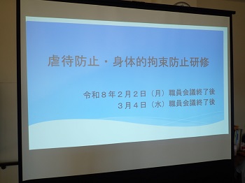 職員会議終了後は、虐待防止・身体的拘束防止研修を実施しました。