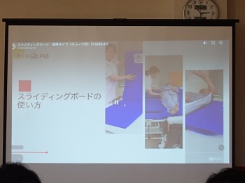 職員会議終了後、入浴時に使用しているスライディングボードの使い方説明動画を見ました。