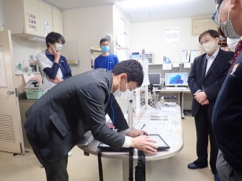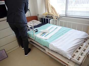 aams(アアムス)という、心拍、呼吸、体動、離着床、睡眠の状態などを離れた場所から見守ることができる、マット型の見守り支援介護ロボットを10台導入し、業者さんが取り付け&説明を行ってくれました。