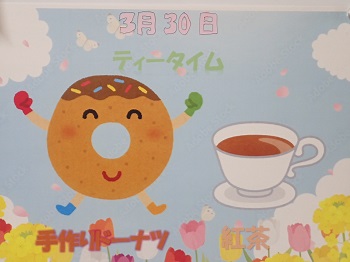 3月30日はティータイムで、手作りドーナツと紅茶が提供されます。