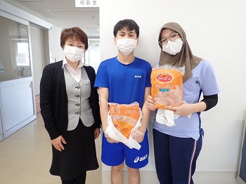 技能実習生4名が、協同組合のSさんから鶏肉のプレゼントを貰いました♪