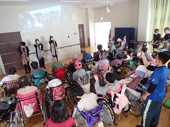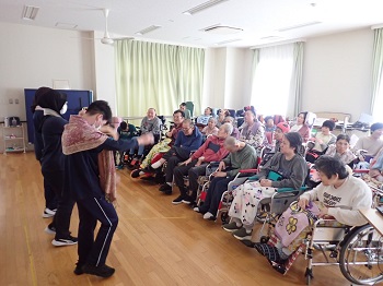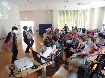 2度目の踊りの際は利用者の皆さんも一緒に踊り、とても会場は盛り上がっていました♪