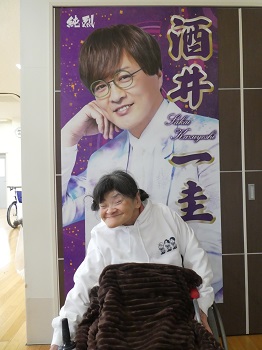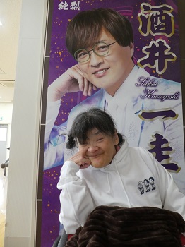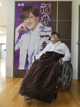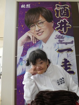 純烈が大好きなNさん、巨大ポスターを購入しましたが、とても居室に貼れるサイズではない為、リハビリ室に貼って記念撮影を行いました。